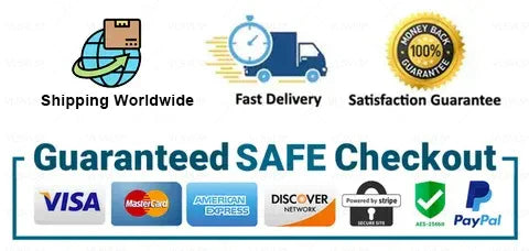 The Checkout Process is Guaranteed to be 100% Safe and Secure with Visa, Mastercard, AMex, Discover, Apple Pay or PayPal.